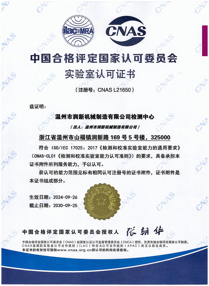 2024年,公司檢測(cè)中心通過(guò)中國(guó)合格評(píng)定國(guó)家認(rèn)可委員會(huì)資質(zhì)評(píng)審及合格評(píng)定,獲得國(guó)家認(rèn)可實(shí)驗(yàn)室CNAS資質(zhì)證書(shū)(注冊(cè)號(hào):CNAS L21650)。