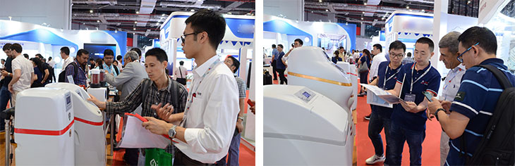 潤萊自主研發(fā)的“雙通道迷你洗臉機(jī)”成為現(xiàn)場最受歡迎的產(chǎn)品。雙通道迷你洗臉機(jī)具有冷熱水雙通道分別軟化出水、動態(tài)再生、缺鹽提醒、智能防泄漏、進(jìn)水穩(wěn)壓等多種實(shí)用性功能,體積小巧的設(shè)計(jì)適合浴室柜下安裝,簡約精致的外觀更是為現(xiàn)代家居生活增添了一道亮麗的景色。